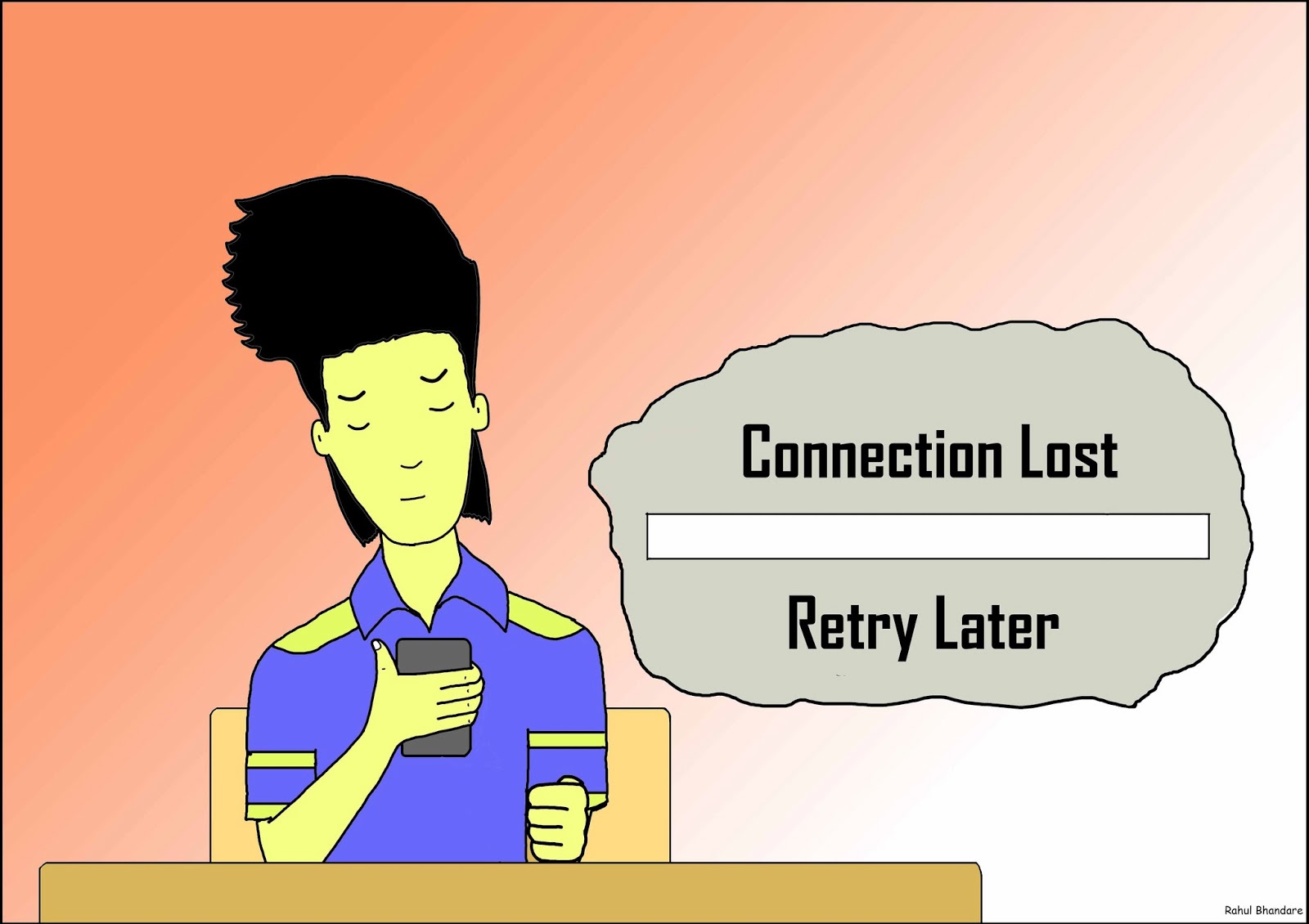 Connection Lost by rahulpb on May 18, 2013 at 2:15 pm Posted In: College days, download, internet, Mobile phone, smart phone PS: Sorry,I have been away for way too long.Hope to be more regular now!! 🙂 Like this:Like Loading... 4 Comments